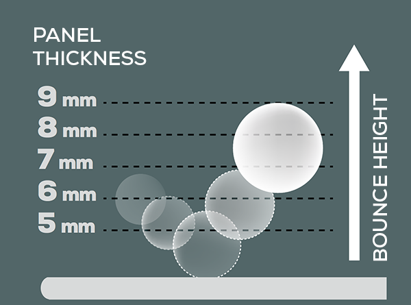 - The thicker the frame, the flatter the playing surface (from 30 to 60mm).